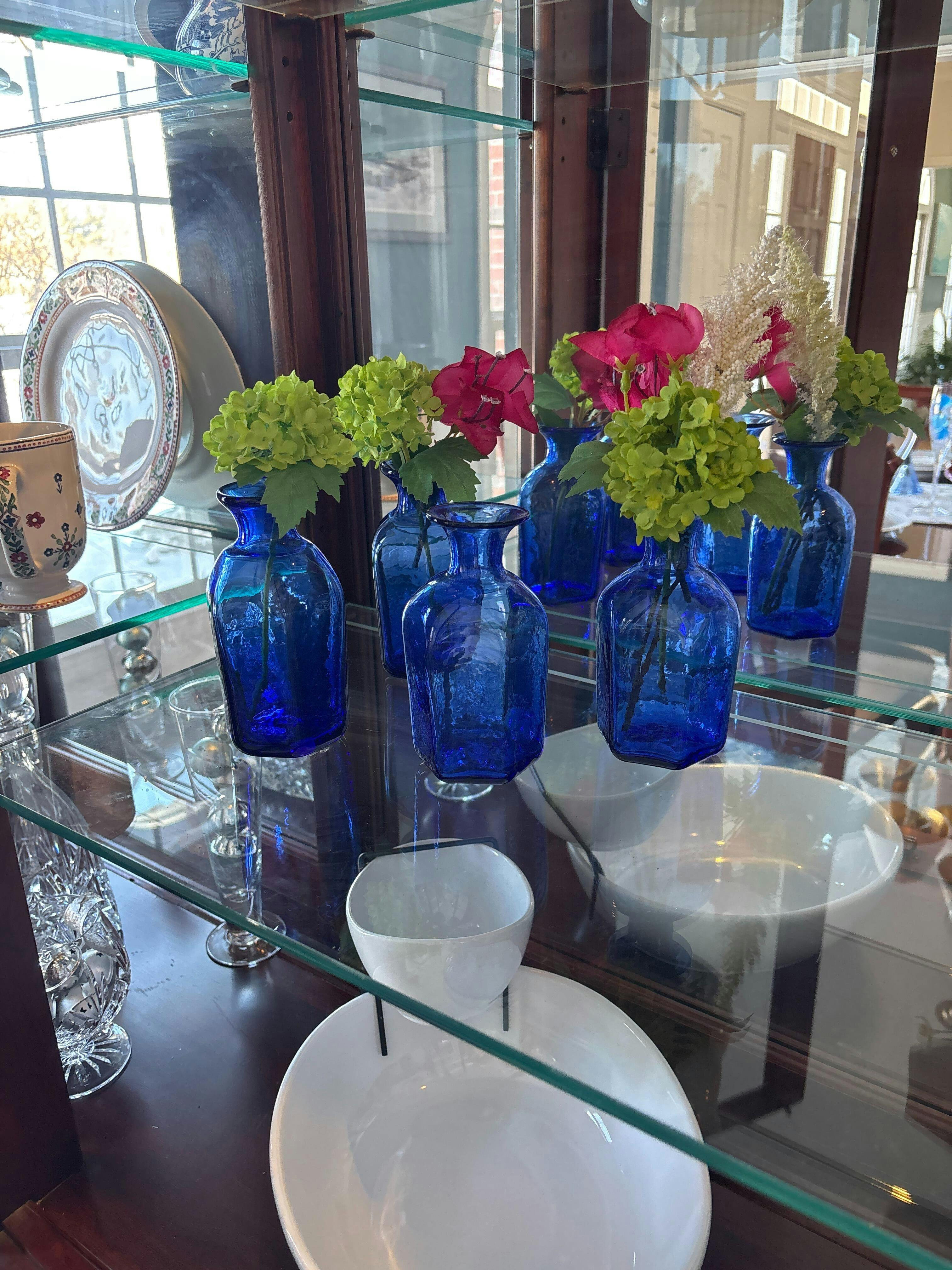 This cobalt hand-blown glass is a traditional pharmacy vial that is ideal for storing essential oils, flavorings and extracts. The vial is also the perfect size for a small bouquet of flowers!